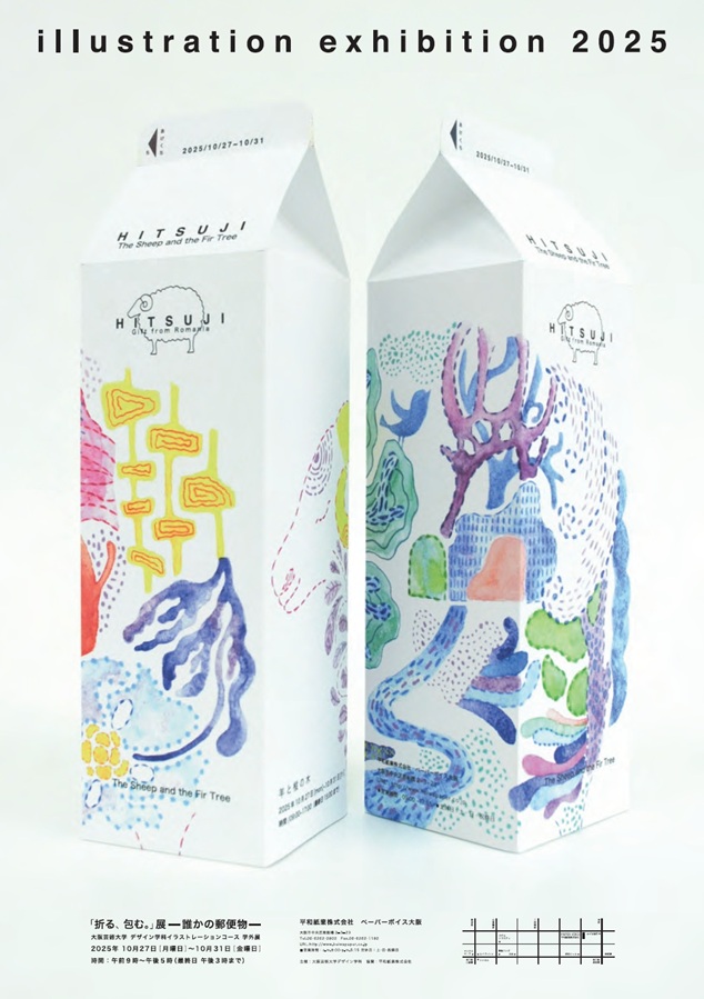 大阪芸術大学イラストレーション学科による展示会。イラストレーションの表現技法をアナログにおき制作を進める学生たちが「折る、包む」をテーマに紙の多様な特性を引き出し、造形作品として展開します。ぜひ会場でご覧ください。
